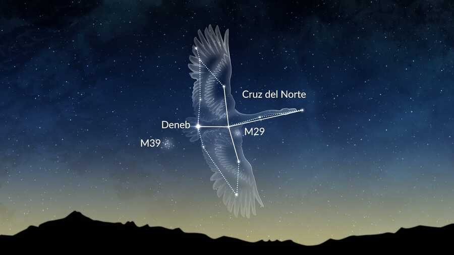 Constelación: Cygnus (el Cisne) La forma distintiva en Cruz de Cygnus la convierte en una constelación fácilmente reconocible (también es llamada la cuz del norte) Deneb y Albireo son para la cola y la cabeza, Fawaris y Aljanah son para las alas, y Sadr brilla en el centro.